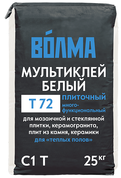 ВОЛМА-Мультиклей белый - предназначен для облицовки стен и полов керамической плиткой и плиткой большого размера из керамогранита, гранита, натурального и искусственного камня, мозаичной и мраморной белой плитки. Для внутренних и наружных работ. Применим в системе «теплый пол». Можно использовать для облицовки бассейнов внутри помещений.