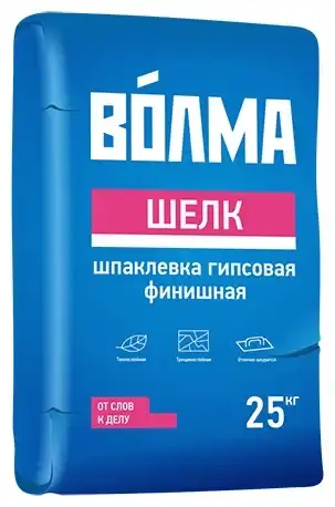 ГОСТ Р 58278-2018; «ВОЛМА-Шелк» - сухая шпатлевочная смесь на основе гипсового вяжущего с размером частиц менее 0,2 мм, минерального наполнителя и модифицирующих доба­вок, обеспечивающих трещиностойкость и повышенную адгезию.